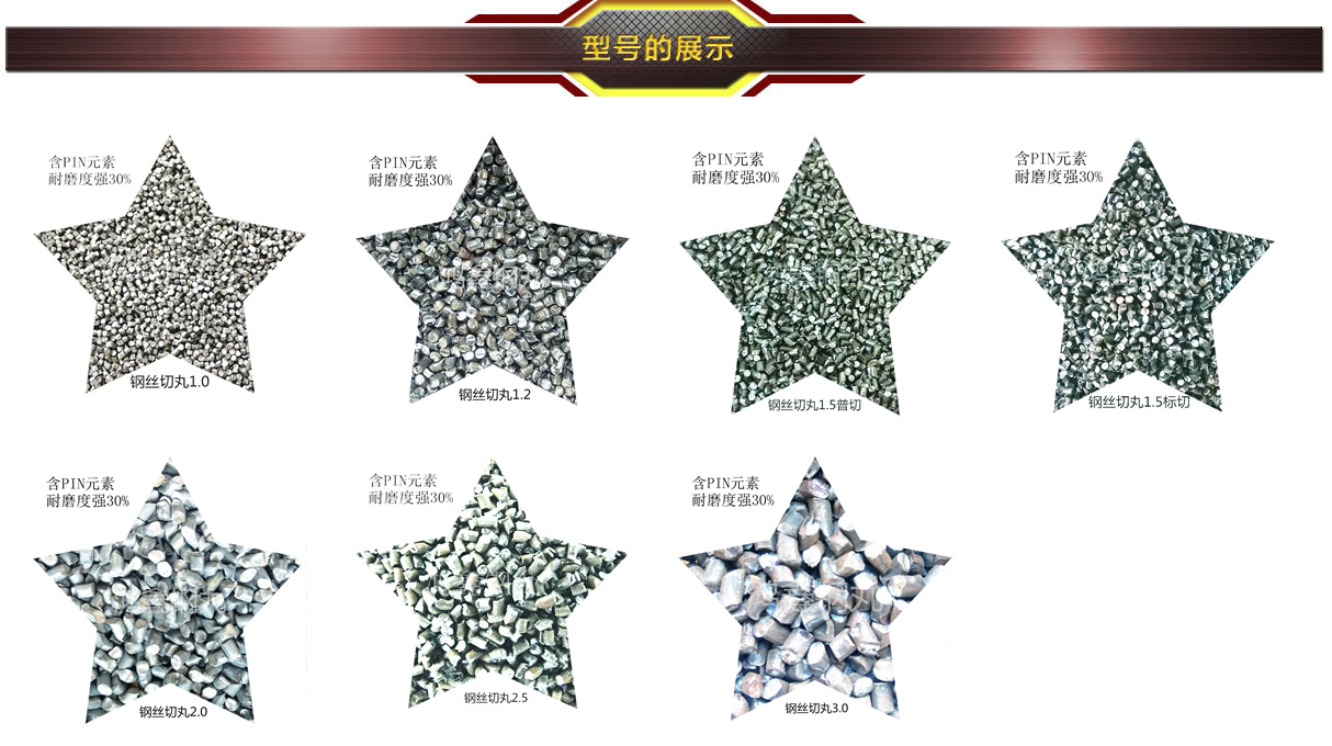 采用優(yōu)質(zhì)的鋼絲繩切斷而成,嚴(yán)格按照直徑:長(zhǎng)度=1:1.超出同行的生產(chǎn)標(biāo)準(zhǔn)。具有顆顆實(shí)心,耐磨適用,粉塵低,**率清理,增加工件表面粗糙度。屬于節(jié)能環(huán)保產(chǎn)品。具有抗壓力強(qiáng),下使用壽命長(zhǎng),能循環(huán)使用7200次以上,使用壽命是合金鋼丸的3倍以上。” 大型鑄鐵、鑄鋼、鑄鐵管、大型鍛件、熱處置件的清砂,鋼結(jié)構(gòu)件除銹,鋼板除銹 根據(jù)不同的企業(yè)做技術(shù)配比,達(dá)到**佳的使用效果。使用該產(chǎn)品拋丸機(jī)的維護(hù)成本會(huì)增加,同時(shí)油漆的損耗會(huì)增多。通常建議客戶謹(jǐn)慎使用。