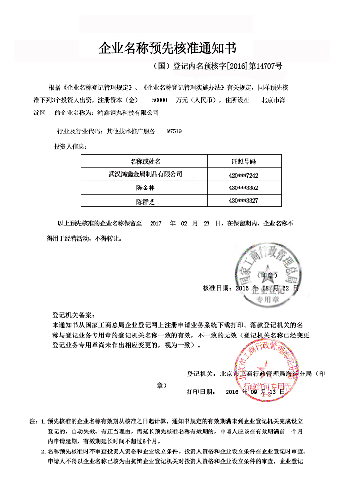 企業(yè)核準通知書
